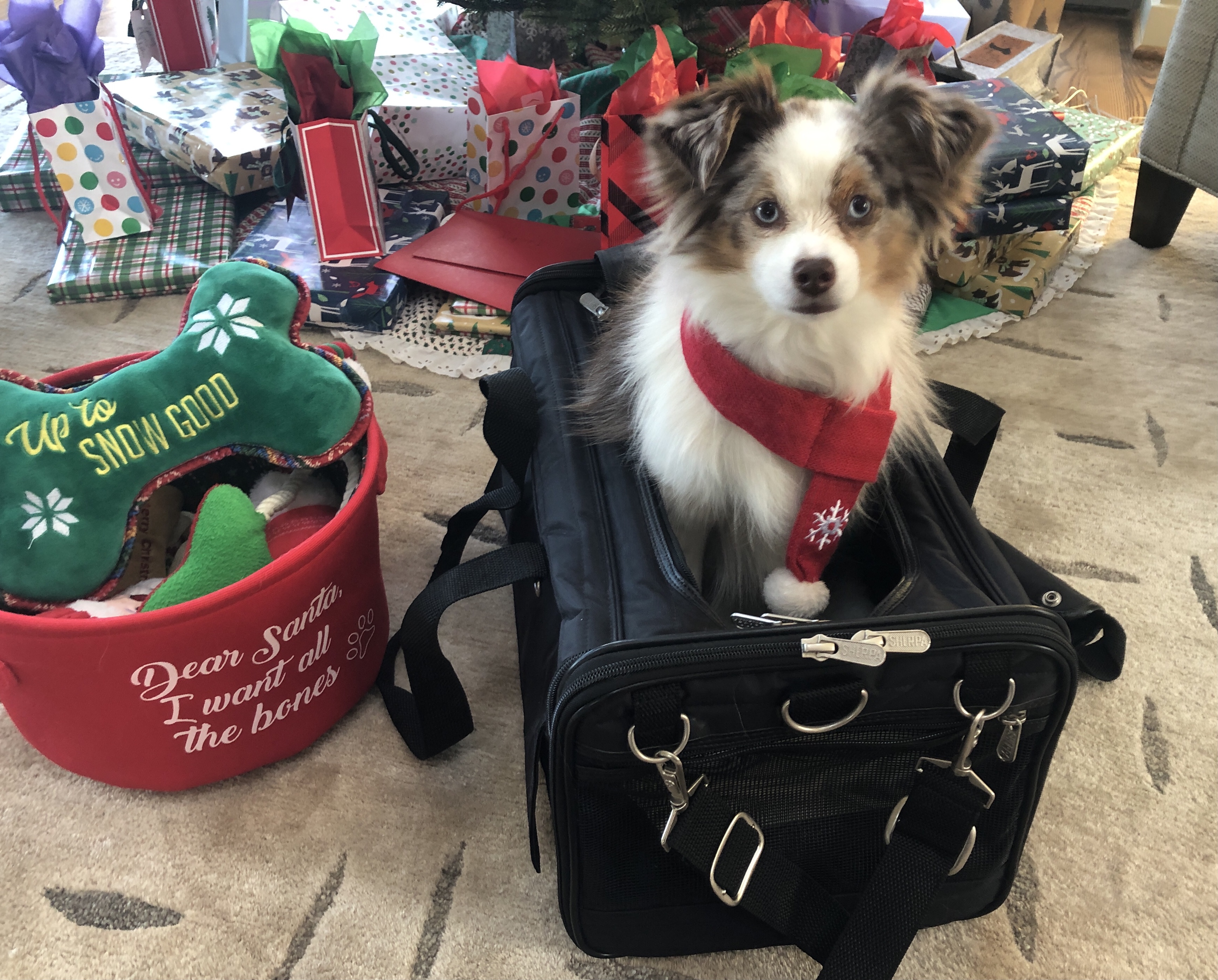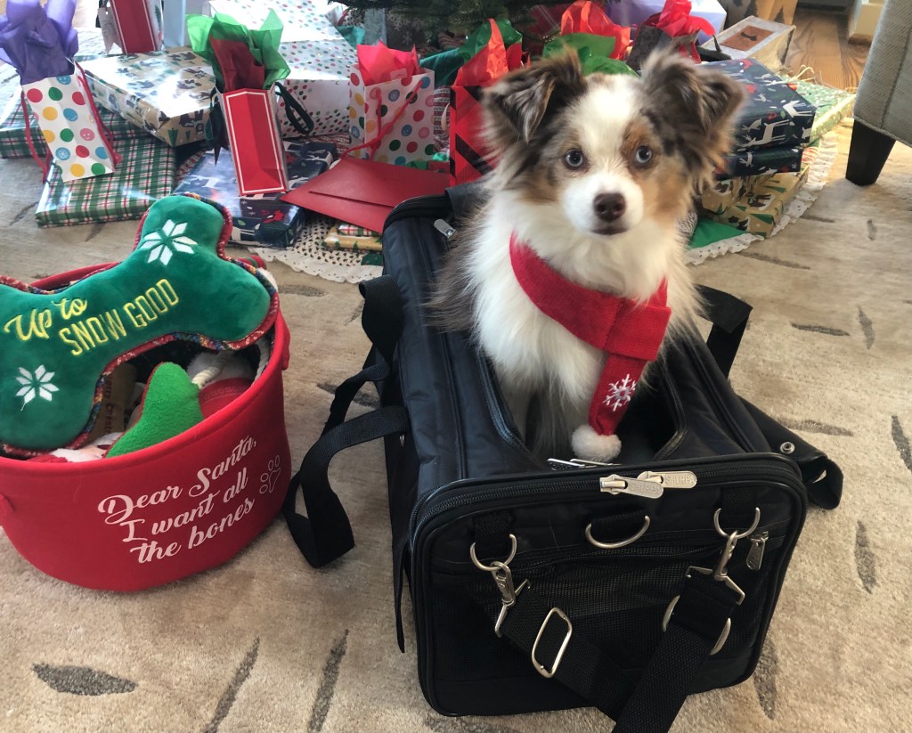 This would never do, so Momma called the airline. As expected, the representative was just not sure about the new rules, but she thought paying pets (in carriers and under the seat) would be just fine in the cabin. And she assured us, since the rules are not implemented until 2021, I would not be “bumped” from our December flight. Thrilled, Momma dragged out my little carrier so I could get used to it again.